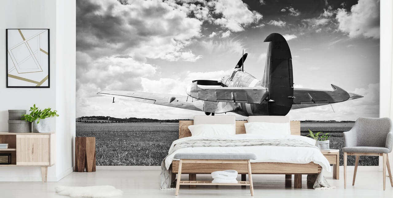 Venez voler avec nous avec cette peinture murale sur mesure Supermarine Spitfire Mk V au repos.