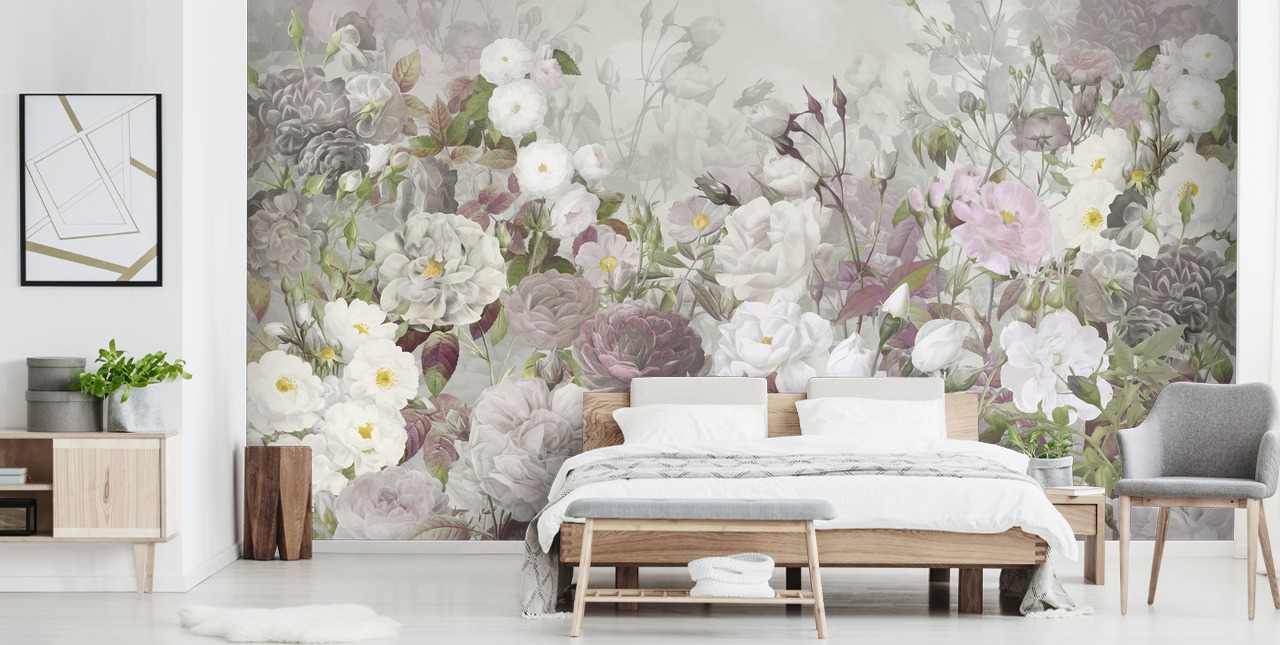 Doté d'un motif floral aussi enchanteur que tranquille, il capture la beauté et l'élégance d'un jardin luxuriant rempli de roses. Avec ses innombrables nuances de rose et de gris, la peinture murale ravit les sens et vous invite à vous évader dans un jardin serein et surnaturel.