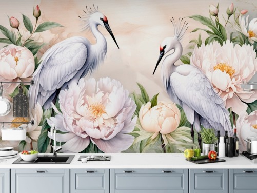 grande fresque murale florale avec des pivoines roses blush de Marina Stupakova pour les chambres