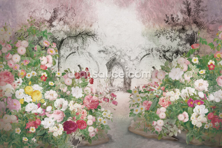 papier peint mural rose personnalisable de primevères en croissance par Marina Stupakova pour les chambres