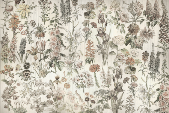 papier peint floral beige et vert clair appelé Meadow de Marina Stupakova pour les chambres