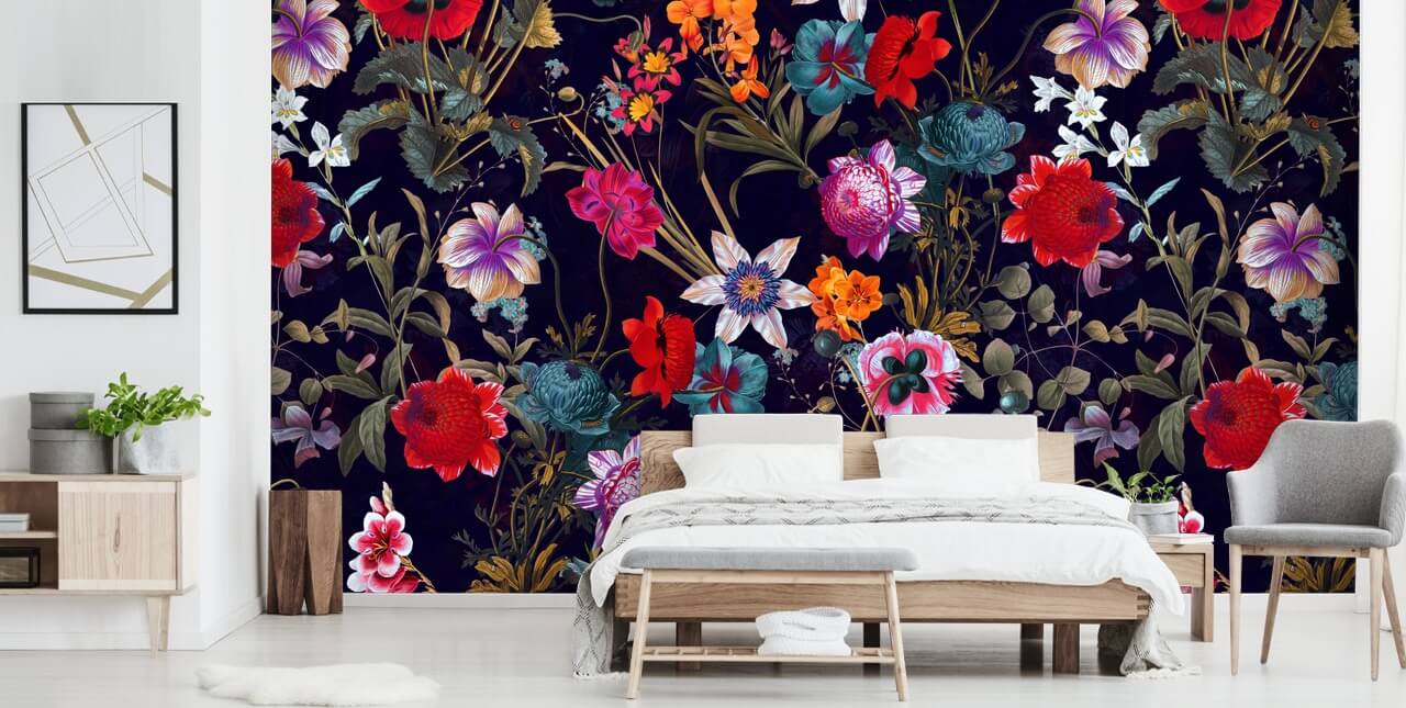 Installez ce papier peint floral foncé le long du mur de votre entrée afin d'être accueilli par la beauté dès que vous entrez dans votre maison. Pour commander, il suffit de remplir le formulaire de commande sur cette page.