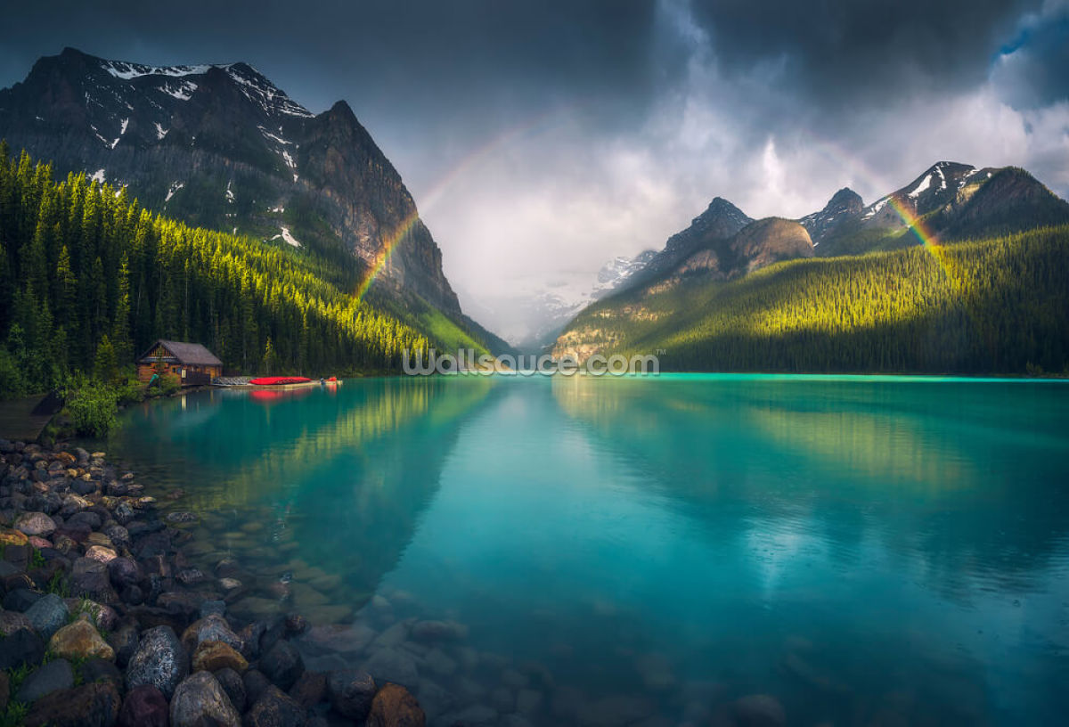 Créez de l'émerveillement sur vos murs avec cette magnifique peinture murale Rainbow Lake. C'est le papier peint naturel apaisant parfait pour votre chambre, votre salon, votre bureau à domicile et plus encore...