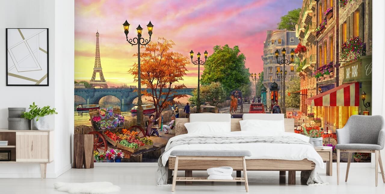 Ramenez une machine à remonter le temps dans le vieux Paris avec ce papier peint mural sur mesure du coucher de soleil sur la Seine conçu par Dominic Davison.