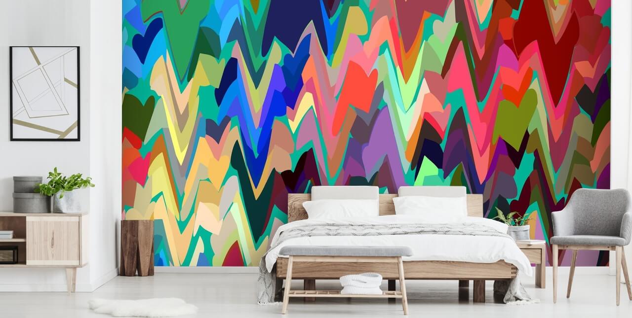 Adoptez la couleur et l'art abstrait sur vos murs avec ce papier peint en zigzag de Shandra Smith de Wallsauce.com.