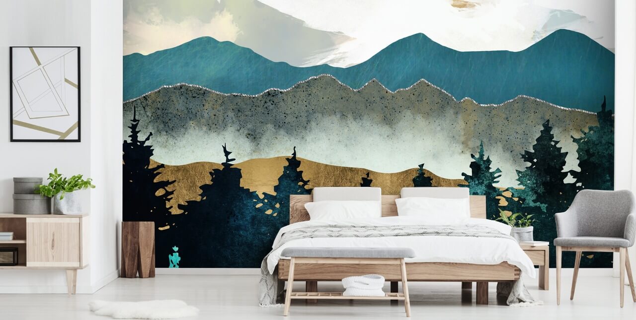 Donnez un nouveau look à votre maison avec ce papier peint tendance Forest Mist de Wallsauce.com. Avec de magnifiques nuances de vert émeraude, d'or et de bleu, ce superbe papier peint bleu marine apportera de belles couleurs ainsi que du style à votre maison.