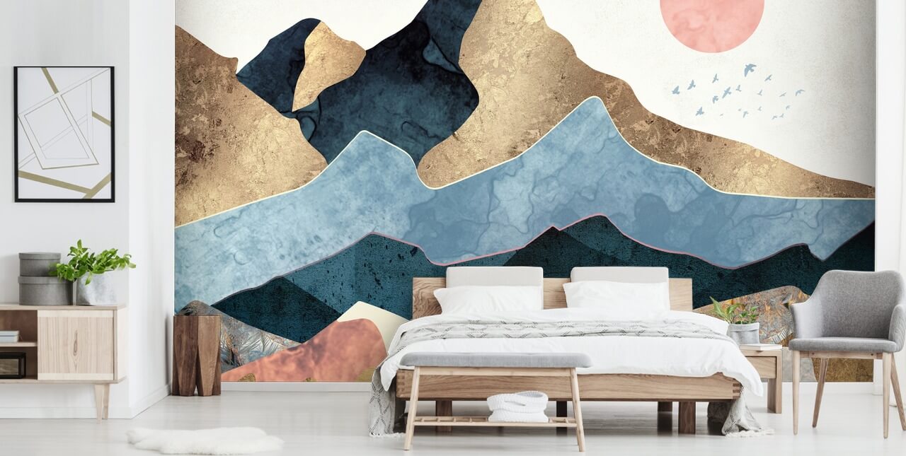 Superbe fresque murale Golden Peaks de Wallsauce. Ce papier peint Golden Peaks de haute qualité est fabriqué sur mesure à vos dimensions.