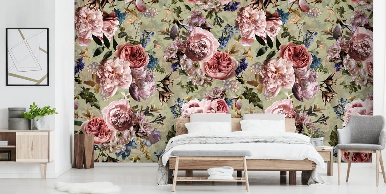 Vert vintage - Papier Peint Fleur Rose