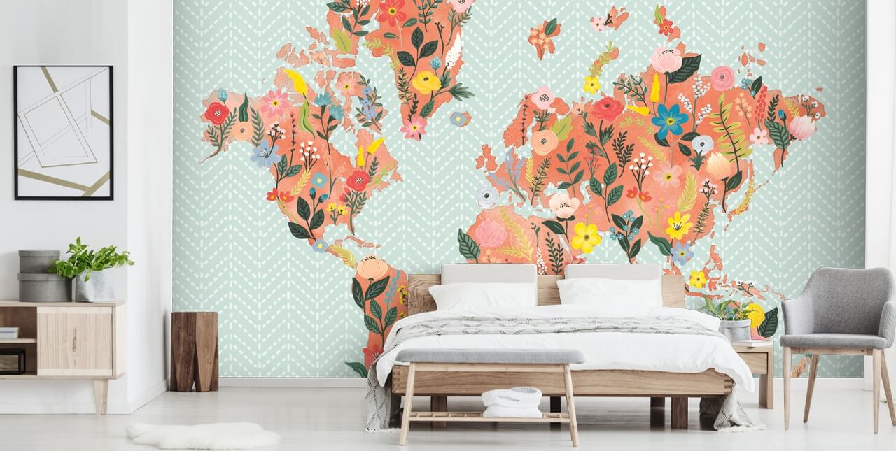 Si vous êtes à la recherche d'un fond d'écran de carte du monde unique, choisissez ce papier peint sur mesure Wild Garden World. Ce papier peint carte Laura Marshall ferait un joli mur d'accent dans la chambre d'un enfant, d'un adolescent ou d'un adulte. Adoptez le fond vert menthe avec une literie de la même teinte ainsi que les tons terre cuite dans les accessoires de chambre de votre choix.