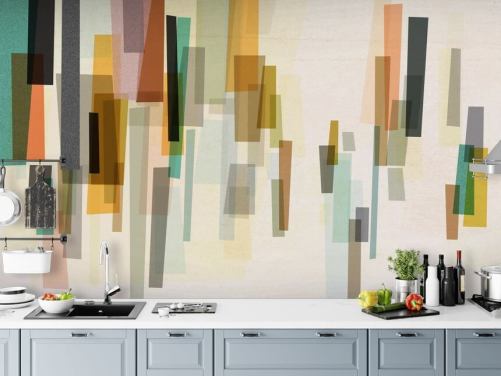 papier peint mural abstrait coloré personnalisable appelé Celestial par Anne Farrall Doyle pour les cuisines, les chambres et les salons