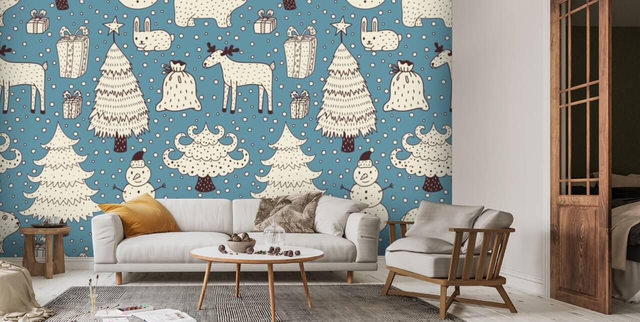 Christmas seamless pattern wall mural. Get into the festive spirit with this Christmas wallpaper.
