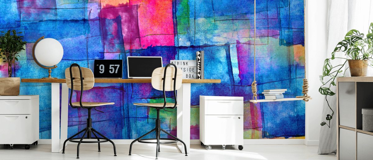 Si vous aimez la couleur et l'art abstrait, pourquoi ne pas vous faire plaisir avec ce magnifique papier peint mural Cubisme bleu ?