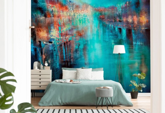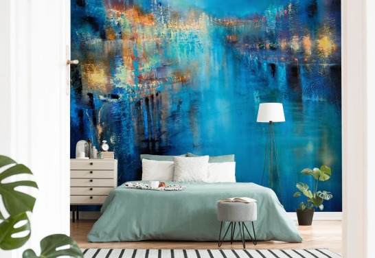 fresque murale abstraite bleue personnalisée appelée Painted Textures par Tim Mossholder pour les salles de bain, les couloirs et les cuisines