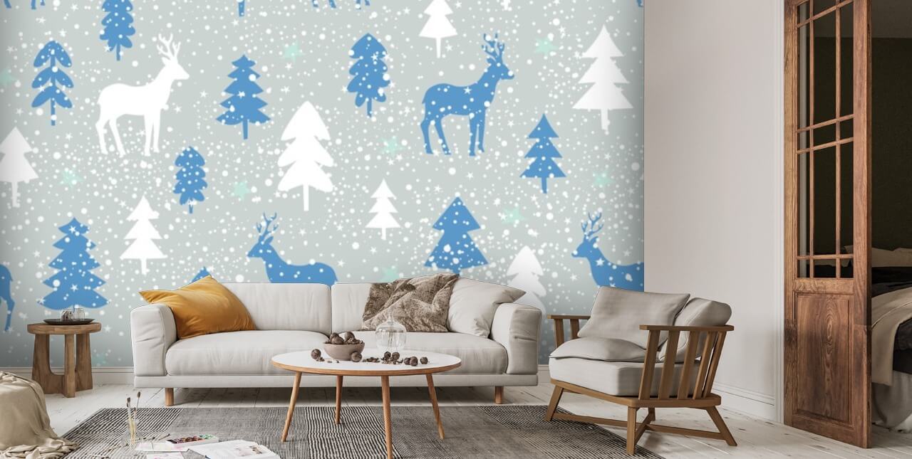 Cute blue and white reindeer winter wall mural from Wallsauce.