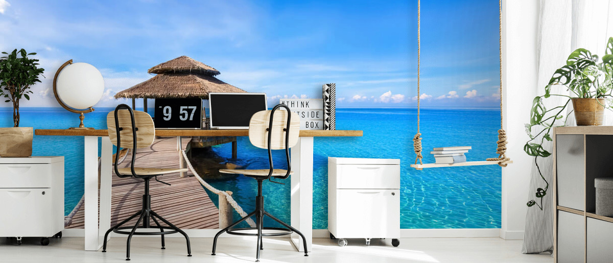 Le superbe papier peint mural Boardwalk to the Pier de Wallsauce apportera le soleil et la mer dans votre chambre.