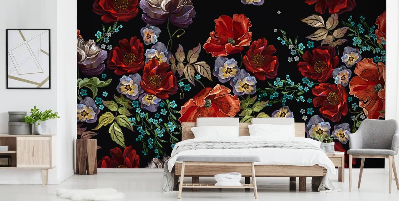 Profitez de ce magnifique fond d'écran Dark Poppies de Wallsauce.com. Le mur d'accent parfait pour une chambre romantique !