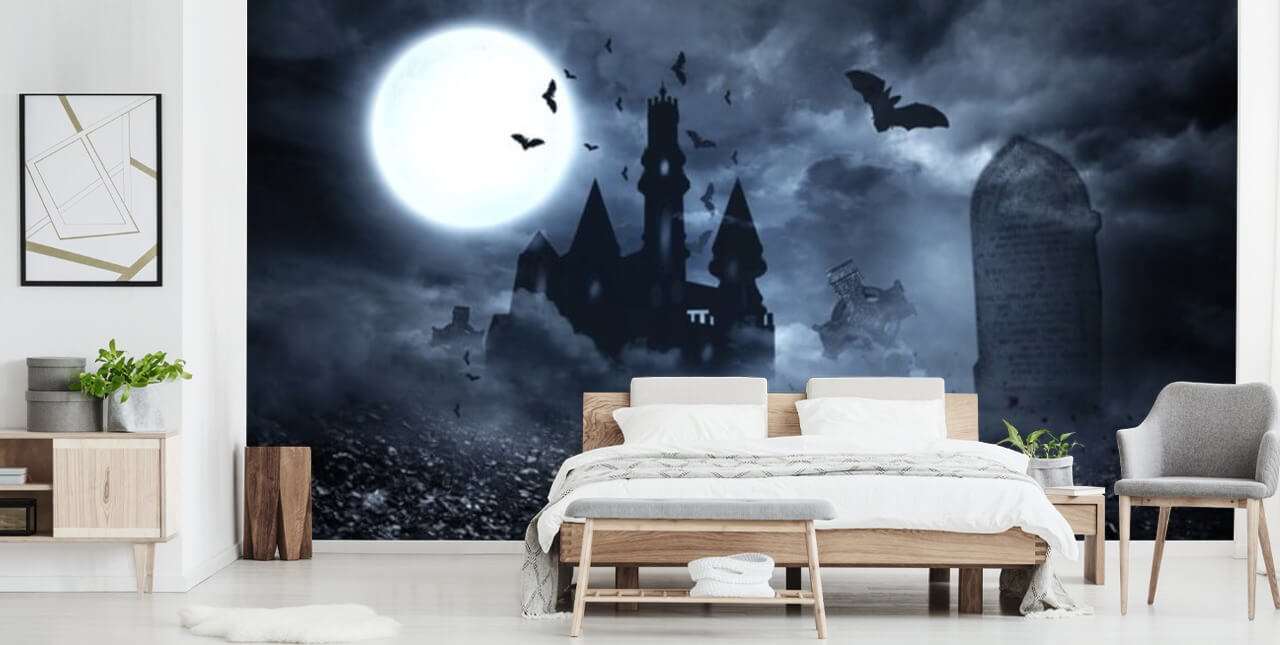 Vous voulez améliorer votre jeu d'Halloween ? Choisissez ensuite ce papier peint mural sur mesure du château de Dracula de Wallsauce. Le mur signature parfait pour Halloween.