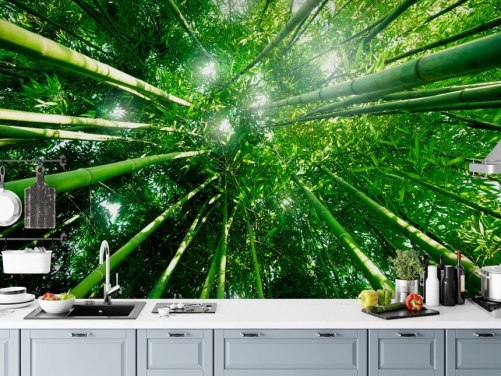 papier peint mural en bambou personnalisé vert appelé Green and White Bamboo