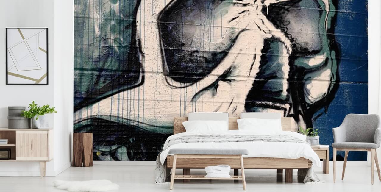 Procurez-vous ce papier peint Graffiti - Skull Face fait sur mesure. Livré en panneaux et livré avec des instructions.