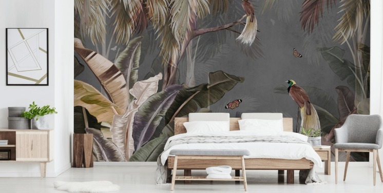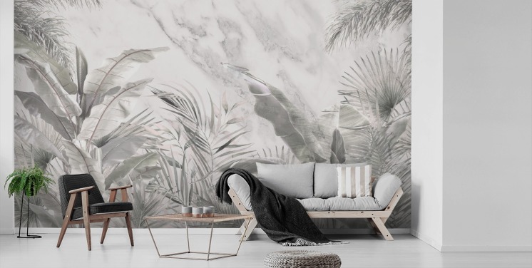 fresque murale monochrome personnalisée de feuilles de jungle pour chambres