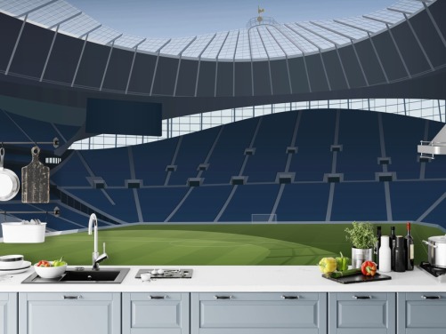papier peint de stade de football bleu et vert appelé Tottenham Hotspur Stadium Football Stadium par Matthew J I Wood Design & Illustration pour chambres d'enfants