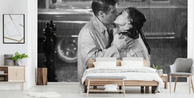 fresque murale en noir et blanc « Breakfast at Tiffany's » intitulée Audrey Hepburn & George Peppard (Breakfast at Tiffany's)