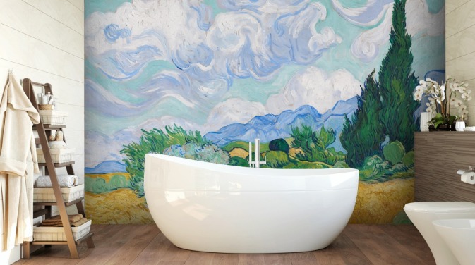 fresque murale d'art intitulée Un champ de blé avec des cyprès de Vincent Van Gogh pour les chambres et les salons