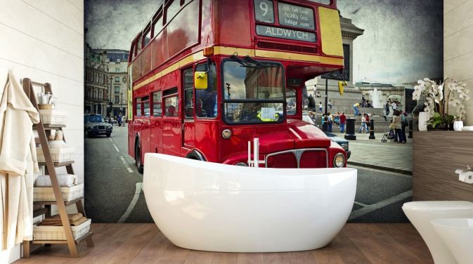 Papier peint à deux étages Motif bus dans la rue Rouge