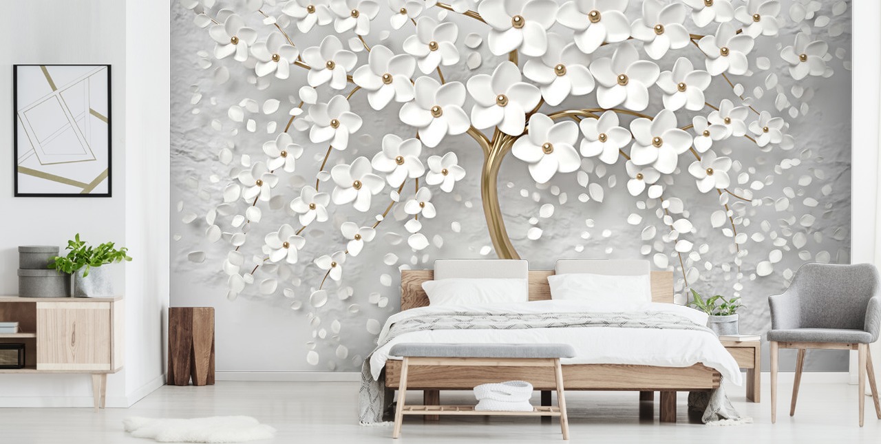 Fleur monochrome - Papier peint 3D à fleurs blanches