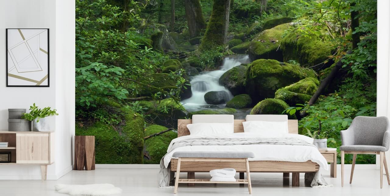 Entrez en contact avec la nature avec ce papier peint Mossy Waterfall fait sur mesure. Fourni en panneaux et facile à installer.