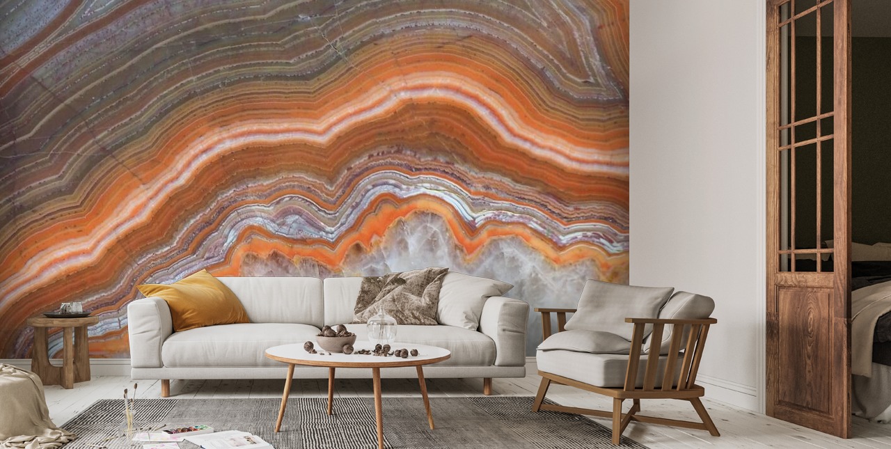 Apportez du style à vos murs avec ce papier peint peint géode orange fait sur mesure.