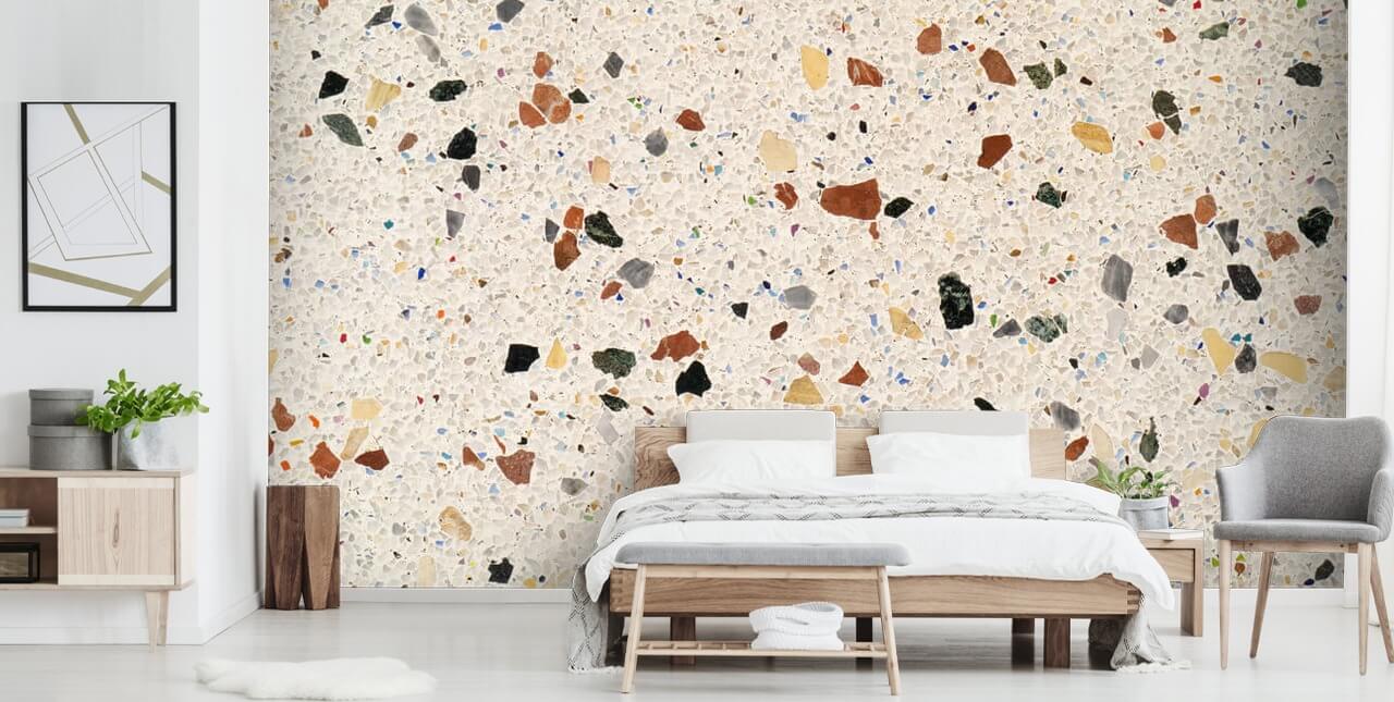 Installez ce papier peint Pebble Dashed Terrazzo fait sur mesure. Disponible en papier peint à décoller ou à coller sur le mur.