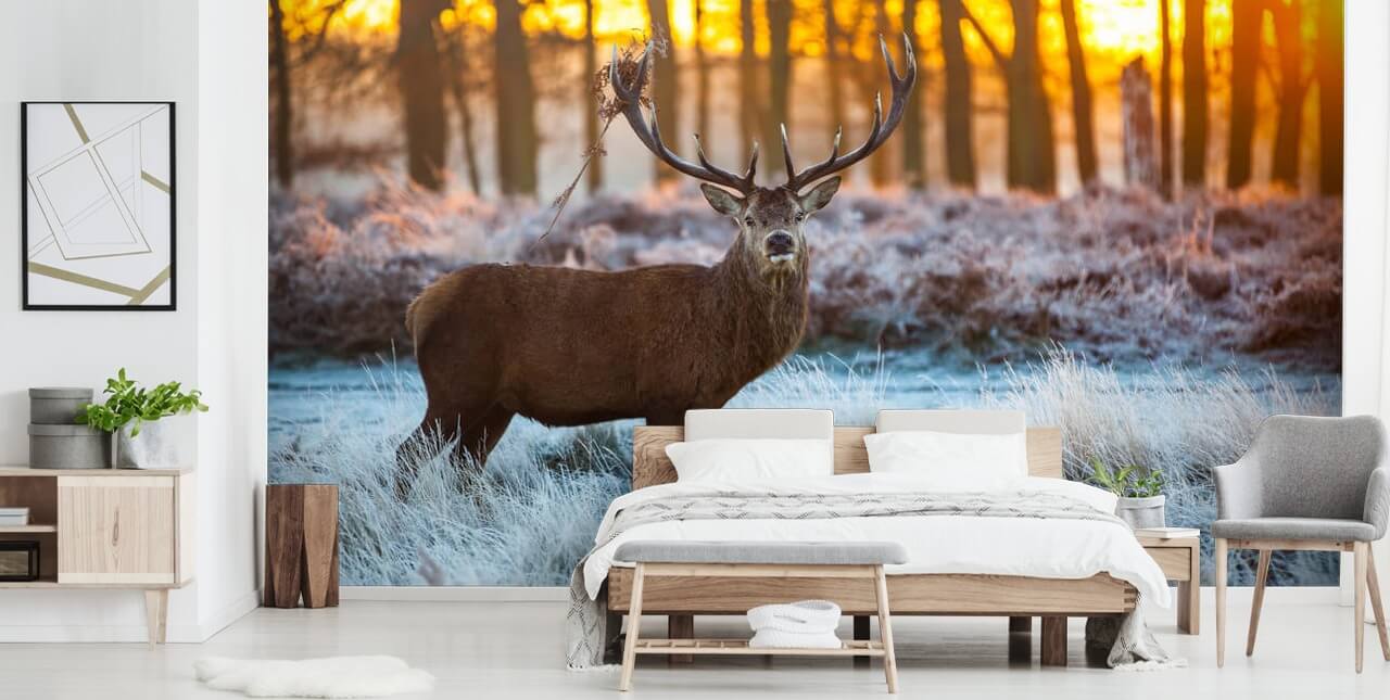 Obtenez une sensation de plein air glacial dans votre maison avec ce papier peint d'hiver Red Deer fait sur mesure.