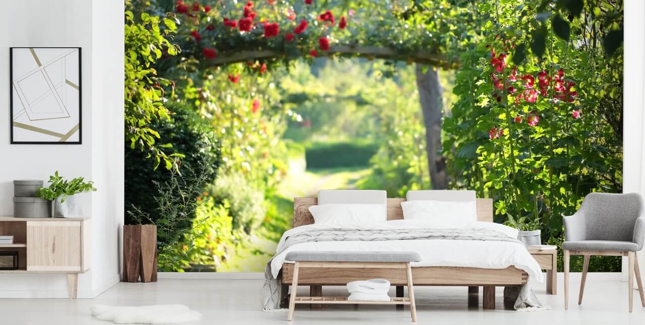 Vous serez prêt à tout pour marcher sous ce papier peint Roseraie. Fabriqué sur mesure et facile à installer.