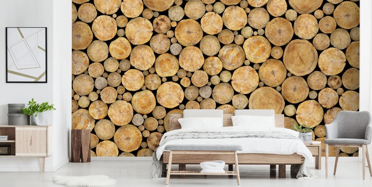 Obtenez une sensation de cabane en rondins confortable dans votre maison avec cette peinture murale sur pieux empilés faite sur mesure.