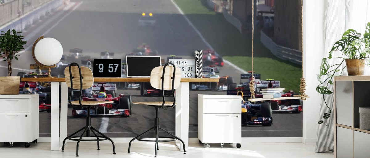 Fourni en panneaux et facile à installer, installez cette peinture murale personnalisée Start of the Bahrain Grand Prix 2010.