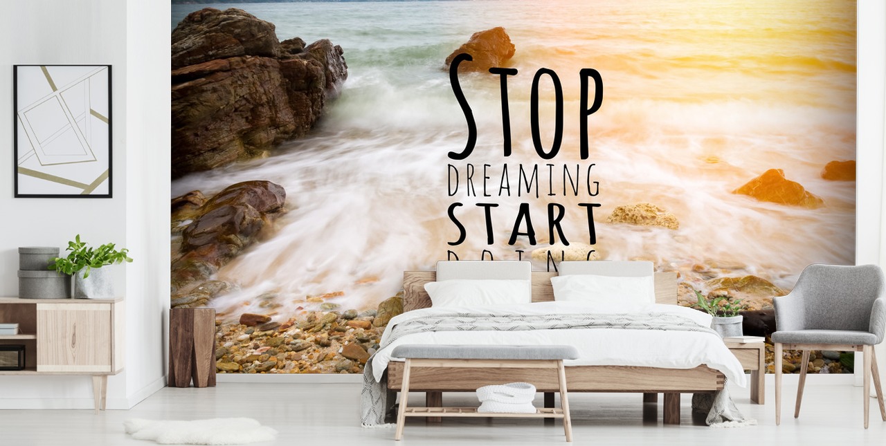 N'oubliez pas d'arrêter de rêver et de commencer à faire avec ce papier peint mural motivant.