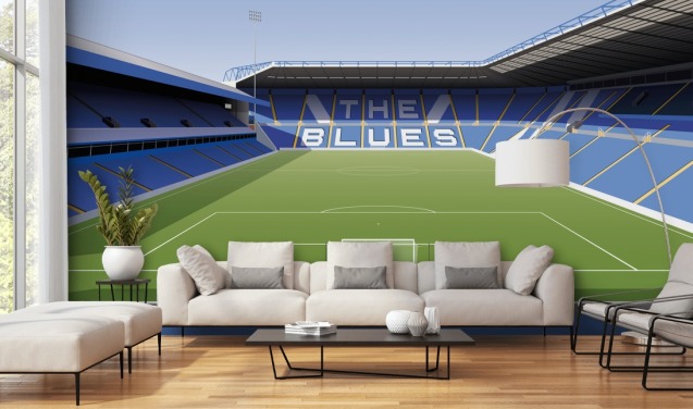 papier peint mural de stade de football bleu et vert appelé Elland Road Football Stadium pour les chambres d'enfants et les salles de jeux par Matthew J I Wood Design & Illustration