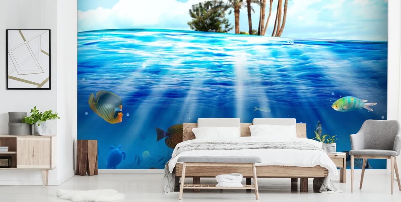 Faites entrer les tropiques dans votre maison avec ce magnifique papier peint Scène sous-marine. Plus vous regardez les eaux de l'océan, plus vous verrez de poissons ! Quelles espèces de poissons pouvez-vous nommer dans ce papier peint de poissons ?