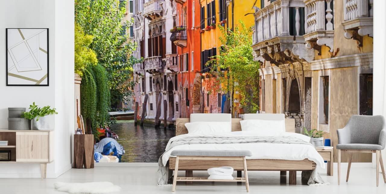 Cette peinture murale de haute qualité de maisons vénitiennes est réalisée sur mesure à vos dimensions. Facile à commander et à installer.