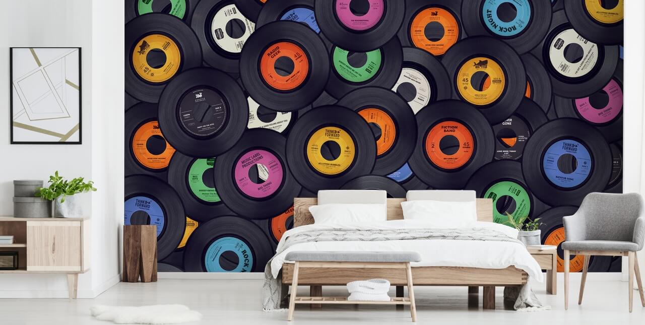 Cette peinture murale lumineuse et colorée est le complément parfait à la chambre de tout amateur de musique.