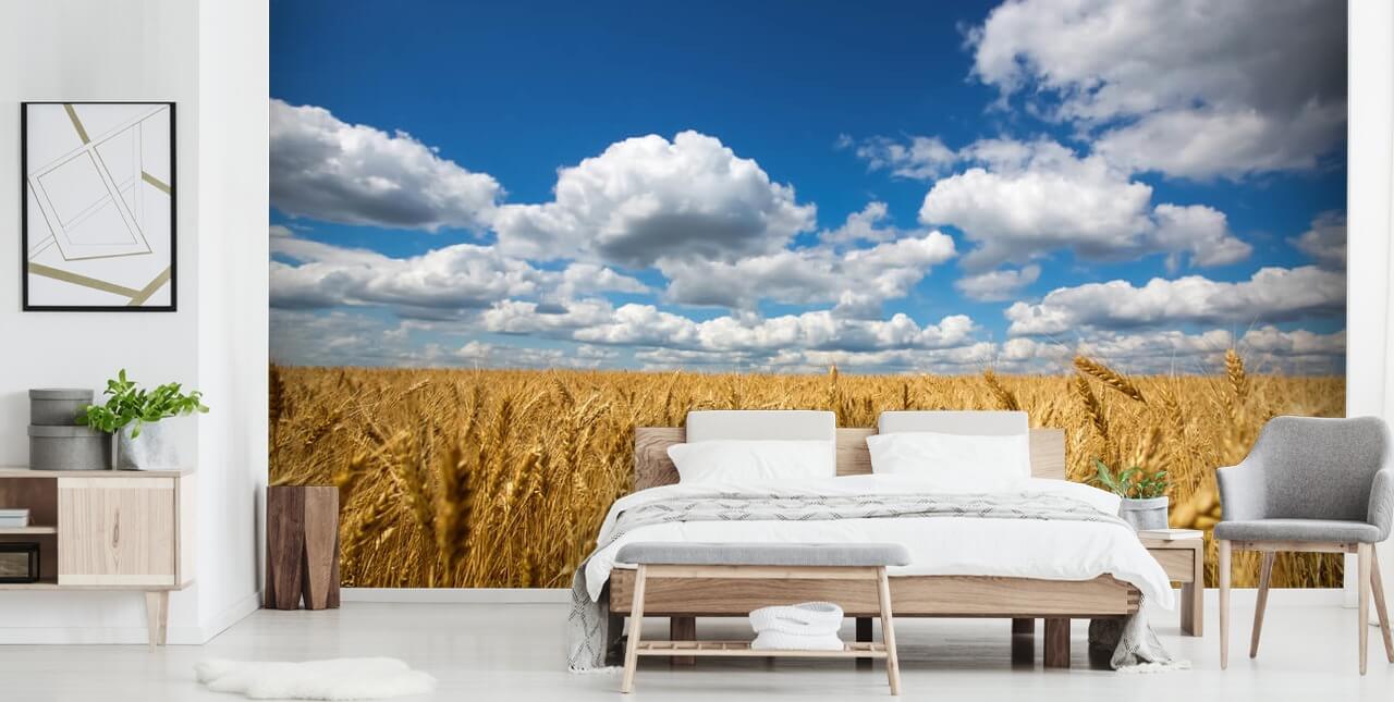 Ne faites qu'un avec le plein air avec ce magnifique papier peint Champ de blé. Fabriqué sur mesure et facile à installer.