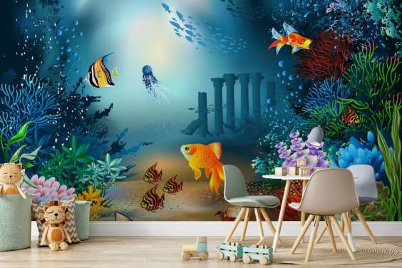 papier peint mural coloré sur la vie marine appelé Underwater World pour les chambres d'enfants et les salles de jeux