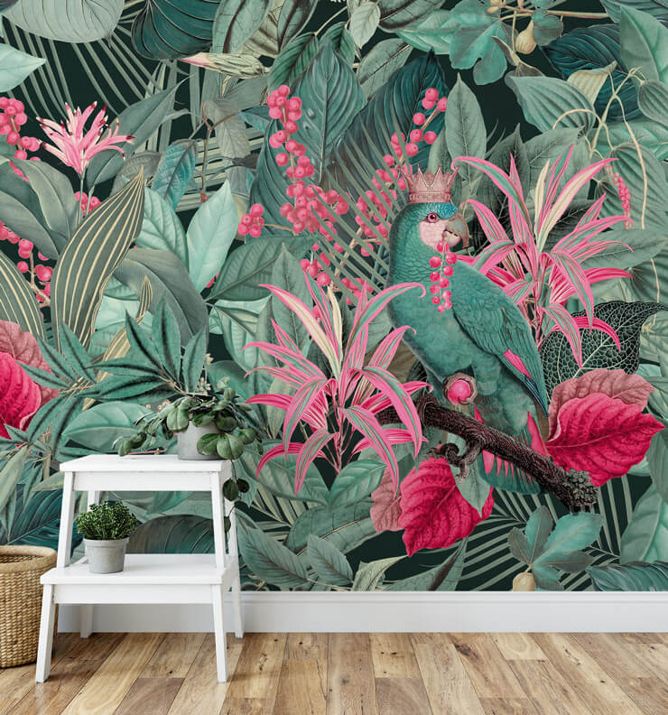 In alternativa, perché non scegliere un motivo colorato e divertente per la vostra casa estiva? Se volete creare uno spazio divertente e socievole, scegliete una carta da parati di design come questo murale King of Parrots della nostra collezione Andrea Haase in stile vintage.