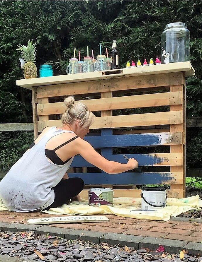 Poiché le barre da giardino hanno dimensioni diverse, può essere difficile trovare una barra che si adatti perfettamente allo spazio a disposizione. Per questo motivo vi consigliamo di realizzare il vostro bancone di pallet. Con qualche chiodo, pezzi di pallet spezzettati e luci fatate impermeabili, potete davvero creare uno splendido bar per la casa estiva. Inoltre, perché non decorarlo con una scritta "Lynne's Gin Bar" per dare un tocco personale?