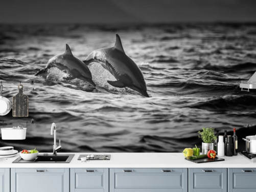 Carta da parati con delfini in bianco