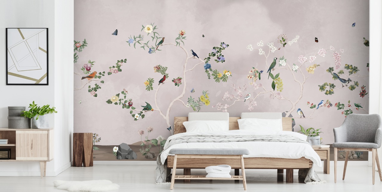 Immergiti nell'incantevole mondo della flora e della fauna con il nostro murale Birds in the Garden II.