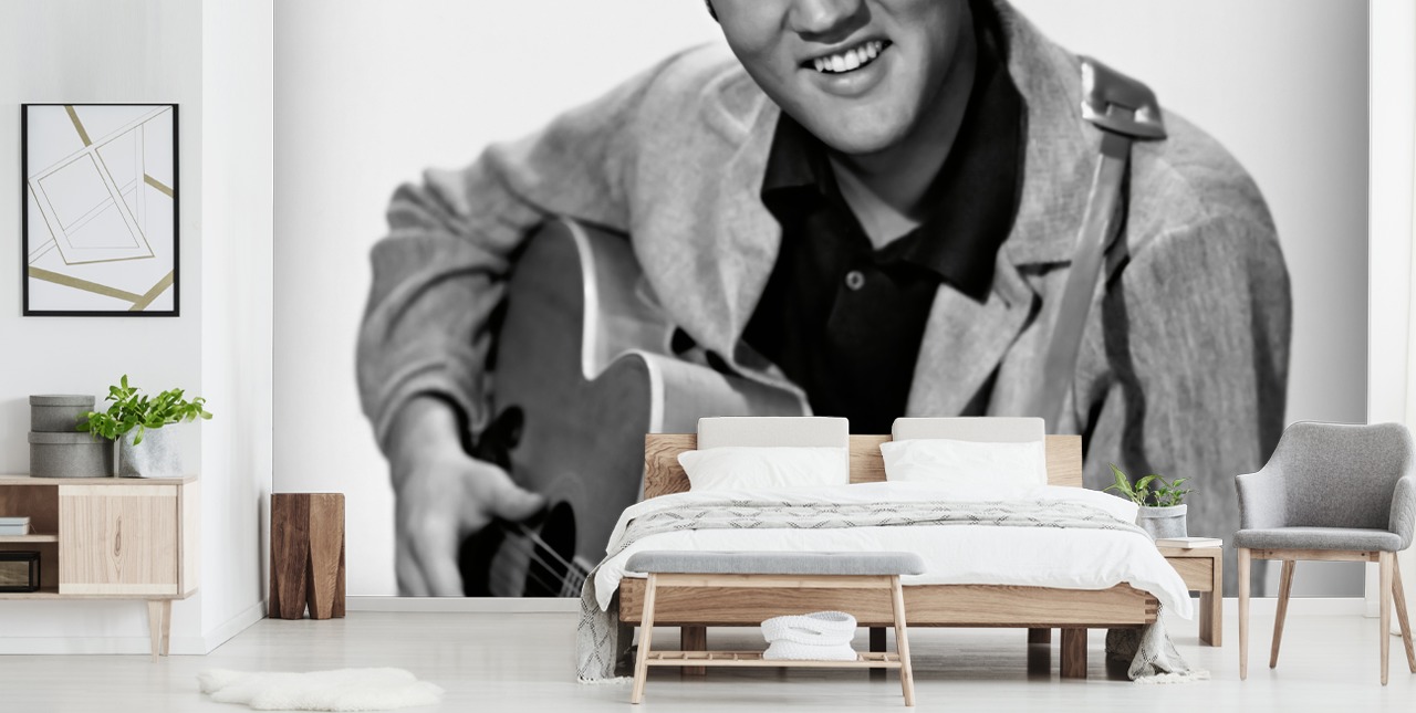 Dai vita al Re del Rock and Roll a casa o in ufficio con l'iconico murale di carta da parati di Elvis Presley.