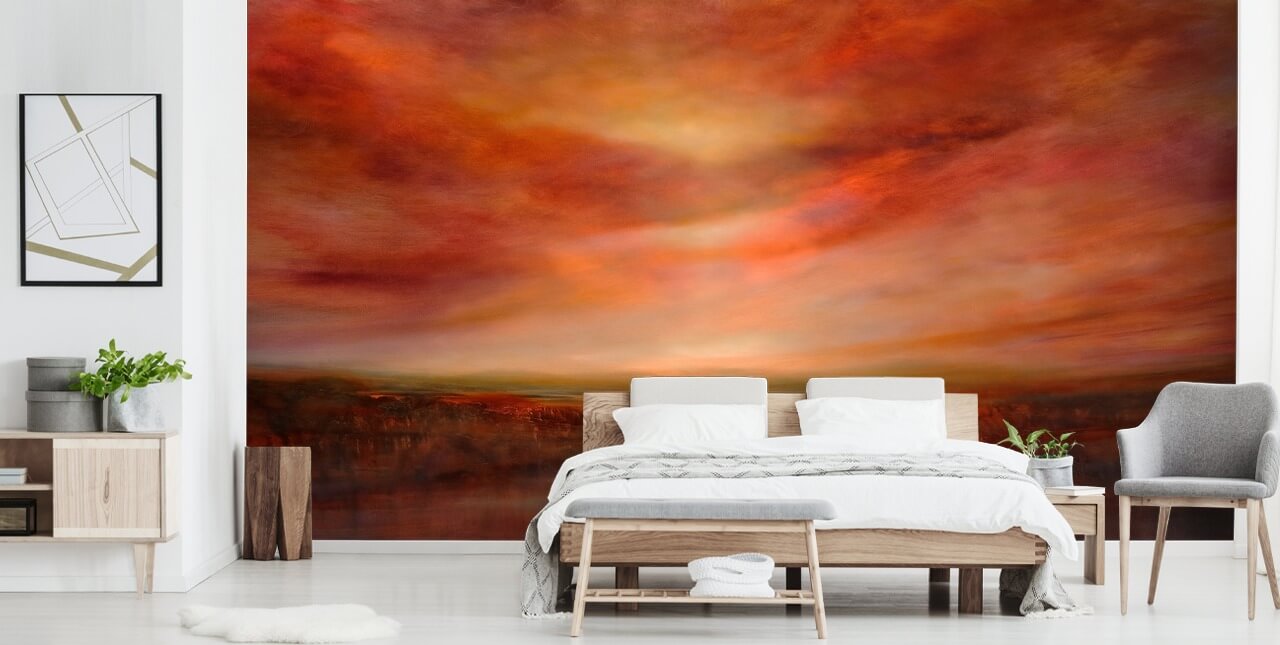 Adornate la vostra parete con i colori ricchi e rilassanti di questa carta da parati su misura Evening Glow.