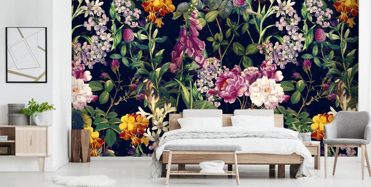 Aggiungete un tocco di colore alla vostra stanza con questa carta da parati su misura Foxglove Field di Burcu Korkmazyurek.
